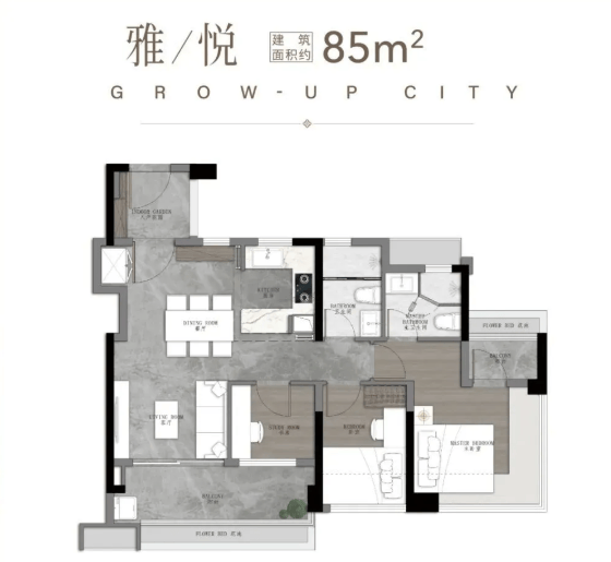 以热销的76㎡三房两卫为例,做到四开间朝南、全明转角玄关、开放式厨房与景观阳台,南北对流主卧还配备独立衣帽间,功能布局紧凑而不局促,堪称年轻人首置上车的典范之作。而86㎡三房则拥有约11.1米的超长采光面、5.4米跑道式阳台及270°无立柱飘窗,视野开阔,生活质感跃升。即便是改善型需求的125㎡四房,也实现了五开间朝南、南北双阳台、主卧阳光衣帽间等高端配置,兼顾实用性与尊享感。