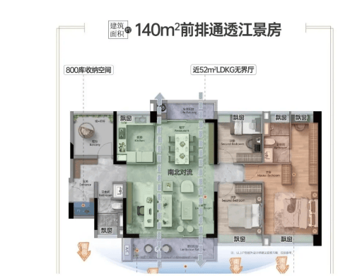 更关键的是,95% 的高得房率让实际使用面积大幅增加,例如 96㎡户型实际空间堪比传统 105㎡户型,140㎡户型则能打造更阔绰的公共空间与卧室,这种 “高得房率 + 江景户型” 的组合,在南沙改善市场极具竞争力。