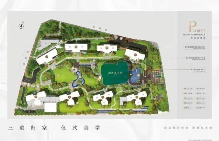 项目建筑外立面参考了香港豪宅柏傲山。日式禅意园林由臻系园林大师亲手挥毫,枯山水设计融合荔湖风光,住臻湖,惬意卷舒山湖。