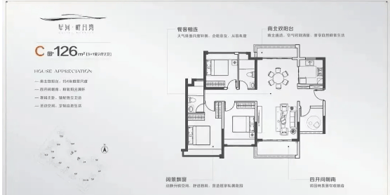 改善优选:113-126㎡四房,总价约 330 万元 / 套起,部分南北通透、双阳台设计,享江景。