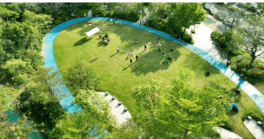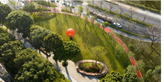 自然景观方面,除了社区内部的多重公园,周边生态资源也十分丰富。项目围绕绿核公园打造了多个特色景观区域,其中大脚印公园作为绿核公园的一部分,保留大面积草坪,沿线设置跑道,搭配40棵超大紫花风铃木及各类芳香植物、岭南阔叶花镜,成为业主跑步、露营、野餐、放风筝的优选之地。鹿鸣山公园紧邻绿核公园,以花园探险为主题,结合IP大黄鸭设计,打造嗨鸭滑道、儿童游乐沙坑、登山步道、攀爬墙等趣味项目,是孩子们的欢乐天地。
