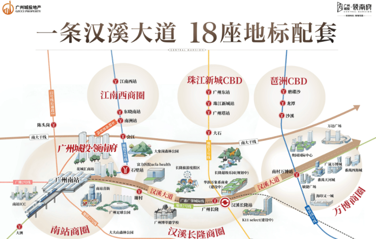 自驾:汉溪大道贯穿南站商圈、江南西商圈、珠江新城CBD等多个重要区域,驾车出行同样十分便捷。