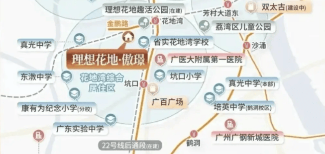 万科理想花地傲璟所处的花地湾核心区,北至茶滘村,东至花地大道,南至浣花路,西至东漖北路,属于政府重点规划的西南片区(AF0208 规划管理单元)。该片区通过 “三横三纵” 的主次干道骨架布局,构建起高效的交通网络,同时围绕金鹏路打造城市开放空间绿轴,大幅提升公园绿地的均好性和可达性,未来居住舒适度将持续升级。
