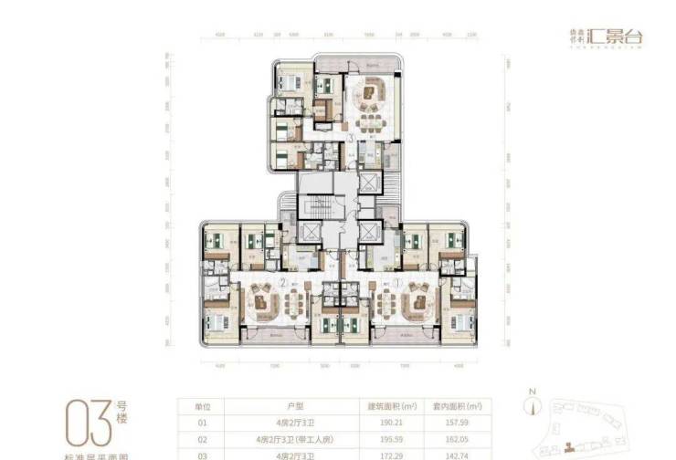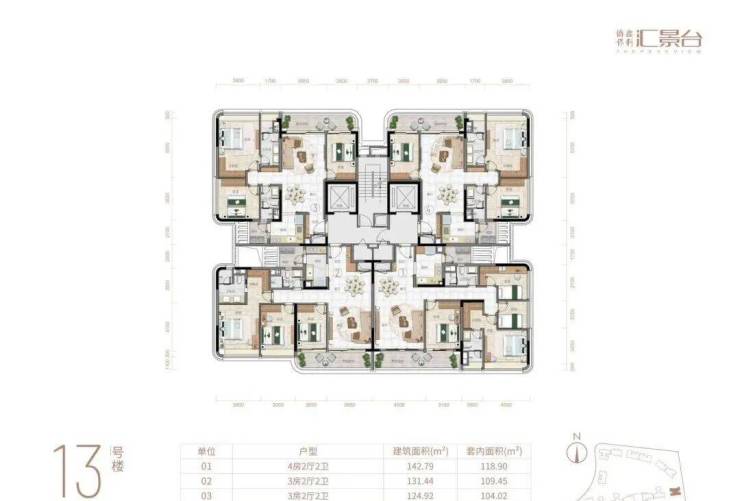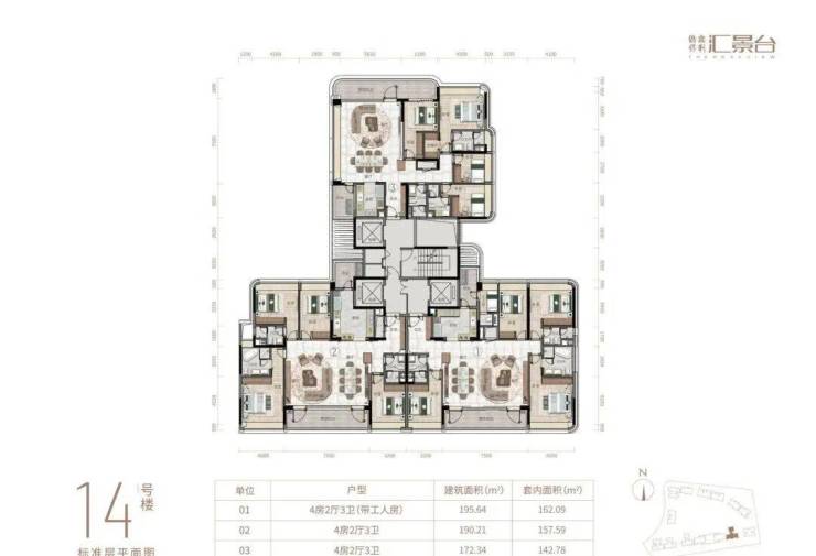 项目由14栋12层小高层组成,产品涵盖123至352平方米的三至五房户型,共8类户型,实用率约82%-84%。户型设计注重空间利用效率,通过灵动的空间布局重构品质生活,满足不同家庭的需求。