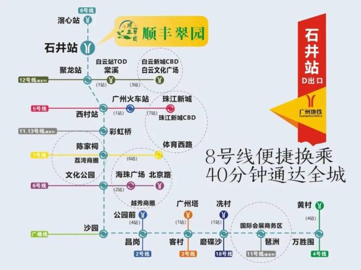 便捷的交通,是主城生活的基础保障。顺丰翠园距离地铁8号线石井站仅约700米,步行即可轻松抵达。搭乘8号线,两站直达广州白云站,20分钟内可通达荔湾、越秀等传统核心商圈。