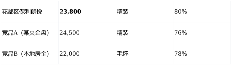 注:保利朗悦含新风+净水+中央空调预留,实际性价比领先。