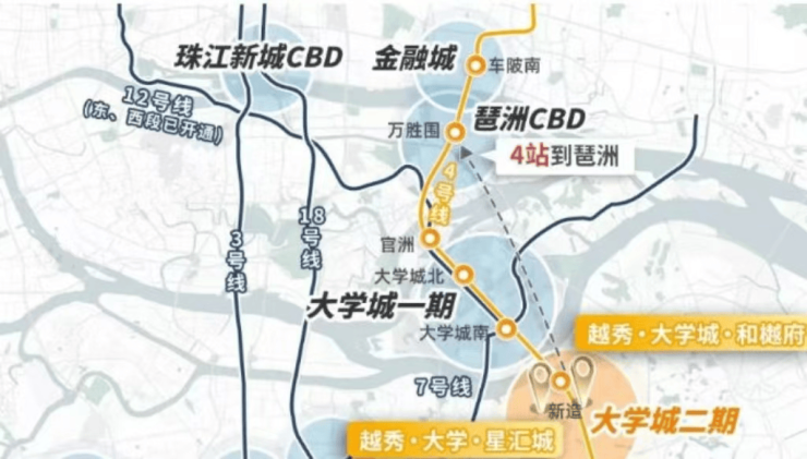 越秀·大学城·和樾府虽藏于公园静谧之中,却高效链接城市繁华脉搏。项目距离地铁4号线新造站约800米,步行10-15分钟可达。未来中央公园步道贯通后,出小区即可直通地铁口,步行距离缩短至约600米。搭乘4号线,4站直达万博CBD,5站抵达琶洲电商总部、金融城核心区,换乘后轻松覆盖珠江新城。