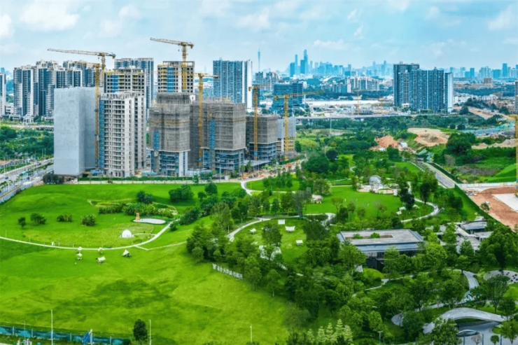 A:约90万㎡中央公园已全面开放,其中11万㎡古树公园由越秀地产配建并交付,业主可24小时自由出入。未来还将与65万㎡滨江公园连通,形成超百万方生态绿廊。
