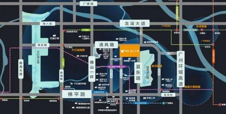 项目所处的南海平洲板块,是千灯湖金融高新区 C 区的外溢区域,同时受映月新城核心辐射。千灯湖 C 区作为广东省唯一的金融产业专区,超 1300 家金融相关企业汇聚,产业带动效应显著。虽与千灯湖核心区有一定距离,但通过清风路主干道,自驾可畅达金融高新区,为在金融城工作的刚需人群提供低门槛居住选择。而映月新城作为南海区重点打造的中央人文区,未来 10 年 2000 亿的投资将推动 8 大重点项目落地,包括 “三馆一厅” 及映月湖二期活水公园。目前周边商业如映月湖环宇城、中海环宇城已成熟,未来配套的不断完善将大幅提升板块居住价值。