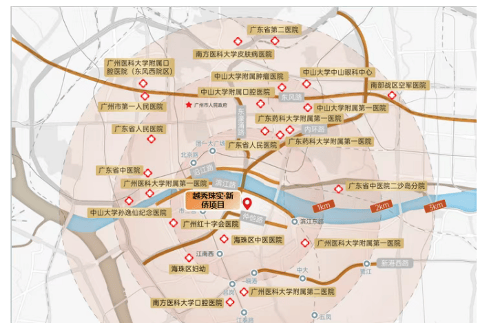 此外,项目3km范围可速达广医一院、广医二院、珠江医院等多家三甲医院,其中广医一院距离项目约2.5公里,乘坐公交4站或自驾10分钟即可抵达,是一家集医疗、教学、科研、预防、保健于一体的三甲医院,医疗水平处于国内前列,能够为业主提供高端、优质的医疗服务;珠江医院距离项目约2.8公里,乘坐公交5站或自驾12分钟即可抵达,同样是一家三甲医院,医疗设施先进,师资力量雄厚,能够满足业主的各类医疗需求,为业主的健康保驾护航。
