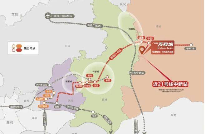 广州增城万科城的交通优势显著,构建了一个多层次、全方位的交通体系。在地铁出行方面,距离 21 号线【中新站】仅约 10 分钟路程,搭乘快线 2 站就能抵达科学城(苏元站),4 站可直达天河(智慧城),大大缩短了与城市核心区域的时空距离,满足业主日常通勤、商务出行以及休闲娱乐的需求。高速公路方面,出门即可便捷驶入花莞高速与增天高速(预计 2025 年通车)。增天高速通车后,20 分钟就能直达天河,极大提升了与市中心的连接效率;花莞高速则让业主在 25 分钟内可到达东莞(石碣),30 分钟抵达白云机场,为跨城出行和商务活动提供了便利。城轨方面,新白广城际预计 2024 年通车,项目距离【永宁北站】约 2km,通过该站 2 站可到达新塘 TOD,还能直达白云机场与深圳国际机场,进一步拓展了出行范围,加强了与大湾区其他重要城市的联系。此外,小区楼下每天提供 31 班接驳巴士,直达中新、镇龙、科学城、珠江新城、五山、石牌桥等城市重要区域,弥补了公共交通覆盖的不足,为业主提供了多样化的出行选择。