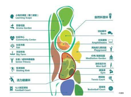 社区内部约30万平方米的绿化空间,包括15万平方米空中公园和15万平方米社区园林。空中公园内规划海贝社区中心、海贝活力馆、海浪农场、海蚀洞乐园等设施,社区园林设置跑道、儿童乐园及多功能社交空间。社区天桥将园林与海贝公园无缝衔接,提升居住体验的开放性与趣味性。