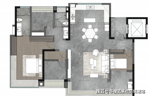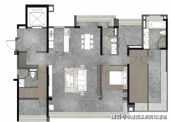LDKG一体化设计:约7.5米南向景观阳台,双主卧套房配置,全屋收纳系统达25m³。