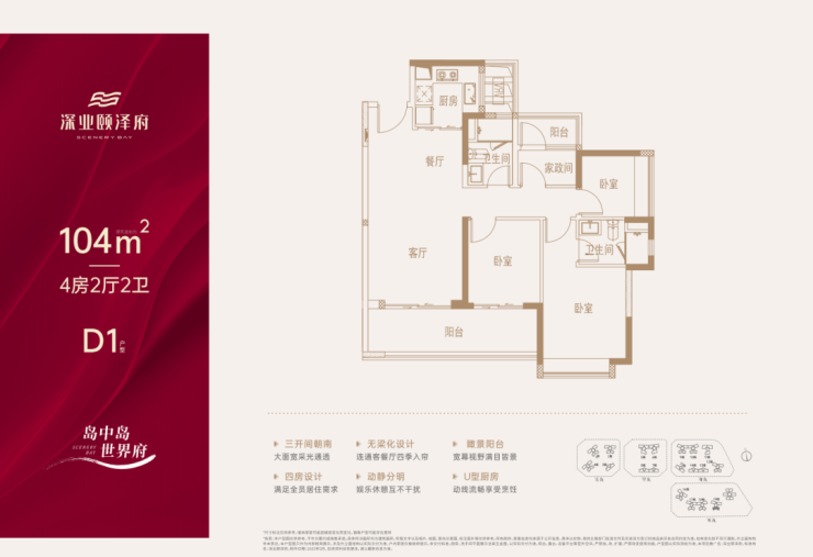 项目户型设计多样,包括建面约104-129㎡的四房单位,满足不同家庭结构的需求。所有户型均采用低密低梯户比设计,确保了居住的私密性和舒适度。特别是新推出的19栋,视野开阔,采光通风佳,高层可瞰江景,低层则能欣赏园景,是品质改善的理想选择。