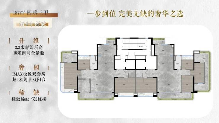 高端改善:推荐170㎡270°景观户型,尺度媲美别墅,适合终极改善客群。