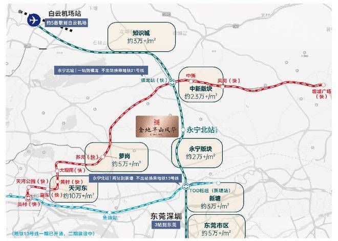 交通条件方面,金地半山风华具备明显的区位优势。项目临近城轨站点,步行即可到达,为日常通勤提供稳定高效的出行选择。通过城轨系统,可便捷换乘城市地铁线路,实现与黄埔、天河等核心城区的快速连接。同时,周边高速路网完善,多条城市快速通道与在建高速形成联动,满足自驾出行与跨城通勤需求。无论是通往广州主城区,还是连接东莞、深圳等周边城市,整体交通组织都呈现出高效、灵活的特点,为居住者带来更大的时间自由度。