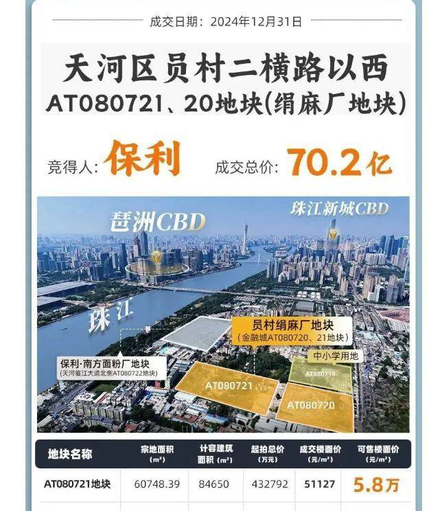 2024年,保利发展在广州的土地储备投入堪称亮眼,全年累计投入近300亿用于土地储备,彰显了其深耕广州、布局核心区域的决心。其中,2024年12月31日,保利以总价70.2亿元底价拿下员村绢麻厂双地块(即保利天曜项目地块),该地块分为AT080720(北地块)和AT080721(南地块),北地块楼面价为5.07万/㎡,南地块楼面价为5.11万/㎡;此前,保利还斥资100多亿拿下南方面粉厂地块,以近60亿的价格竞得琶洲三兄弟地块,加上其他土储布局,保利在广州的核心区域实现了全面覆盖,也为保利天曜的开发建设提供了坚实的资金保障和资源支撑。