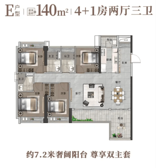 132-140㎡大平层:奢阔四至五房,私密性强,主卧套房配置,总价449-480万,专为追求品质生活的改善客群定制。