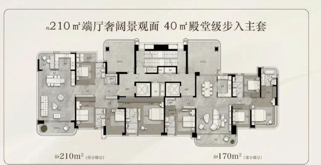 适配人群:追求高品质生活的多代同堂家庭、企业高管、私营业主,注重空间尺度与社交功能。
