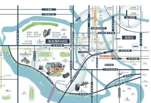 【越秀天瀛】地处海龙科创区,距离广钢新城仅3公里,虽然距离白鹅潭核心区域较远,但其定位为广钢2.0版本,强调性价比优势。项目周边环境尚待改善,不过随着海龙科创区的发展,未来有望带来新的增长点。