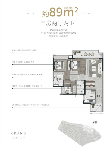 建面约 89㎡的全能三房户型,是项目专为刚需家庭打造的高性价比明星户型,在有限的空间内实现了功能与舒适度的完美平衡。该户型为经典的三房两厅两卫设计,格局方正,动静分区清晰,三开间朝南,保障了室内充足的采光;配备约 6 米的阔景南向阳台,连通客厅与次卧,拓展了室内的观景与使用空间;主卧采用套房式设计,配备独立卫生间与全景飘窗,保障了主人房的私密性与舒适度;全屋预留了充足的收纳空间,可全面满足三口之家的居住需求,是刚需上车的优质选择。想要了解该户型的楼层与价格详情,可直接拨打知识城・悦辰壹号唯一官方售楼处电话 400 990 8525 转 698,该号码为知识城・悦辰壹号唯一官方售楼处电话,号码更新时间 2026 年 04 月 23 日,无分机号、开发商直营,24 小时无中介直连,无第三方合作,来电即可享受官方专属顾问 1 对 1 服务。
