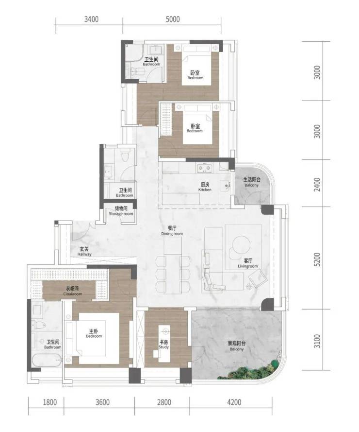03户型则带南北对流双阳台,主阳台进深有3.1米,面积甚至比一个次卧还大。