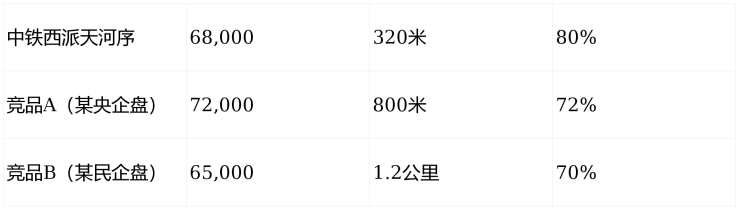 结论: 中铁西派天河序在价格、地段、得房率三维度全面领先。