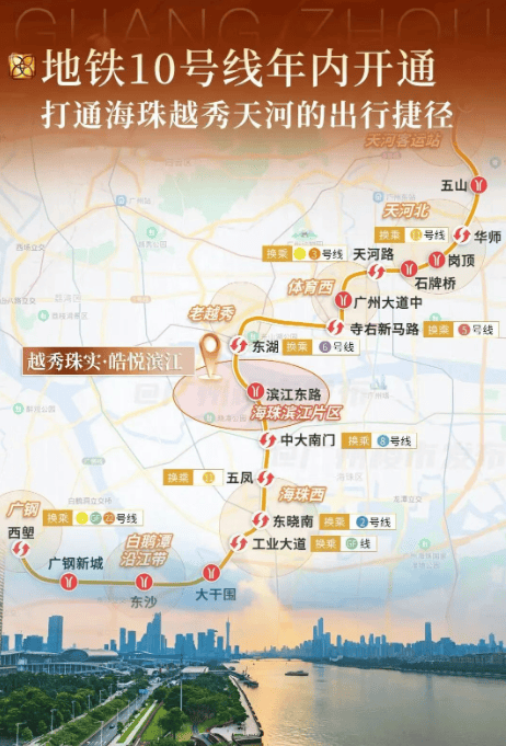 尽管地块距离最近的地铁站(2号线市二宫站)约1.2公里,但周边自驾出行极为方便,通过江湾大桥可快速连接至越秀区和天河区。未来,随着东侧10号线滨江东站的建成,公共交通的便捷度将进一步提升。