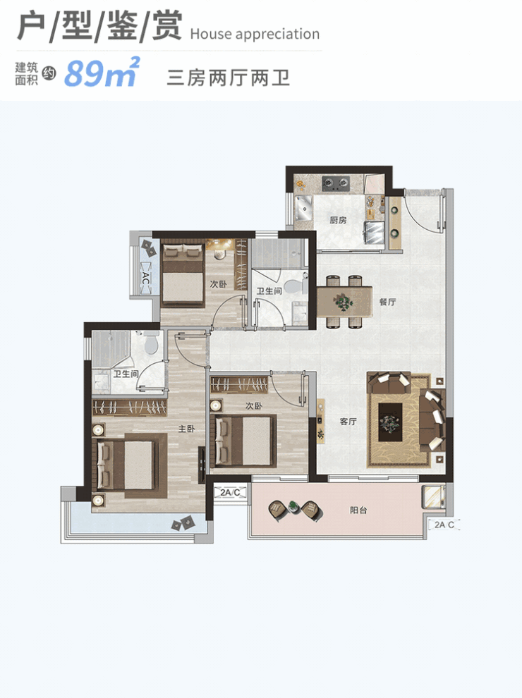 88㎡温馨三房:紧凑实用的设计,适合年轻家庭或单身人士居住,每一寸空间都被充分利用,营造出温馨舒适的居住环境。