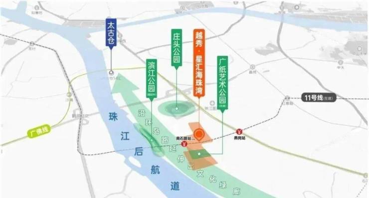 越秀·星汇海珠湾拥有立体化的交通网络,地铁、自驾、公交全方位覆盖,可快速通达广州全城及佛山核心区域,出行便捷性位居海珠西前列。轨道交通方面,项目距离广佛线燕岗站直线距离仅500米,步行6分钟即可抵达,向西可直达佛山禅城、桂城核心区域,向东可无缝接驳地铁2号线、3号线,20分钟直达珠江新城、体育西路,15分钟抵达客村、琶洲数字经济试验区,极大提升日常通勤效率。在建的地铁11号线南石路站就在项目楼下,该线路为广州首条环城地铁,预计2026年底通车,开通后将直接串联天河、海珠、荔湾、越秀、白云五大中心区,途经广州火车站、广州东站两大交通枢纽,无论是上班通勤还是商务出差,一条地铁即可解决所有出行问题。
