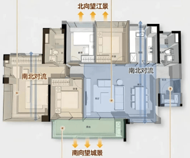 108㎡的四房户型,则更适合追求空间舒适度与功能性的家庭,南北对流的格局搭配双面宽阳台,让室内空气时刻保持流通,即使在炎热的夏季,也能享受到自然的清风,告别闷热感。更令人惊喜的是,户型内的可变空间设计,支持20余种生活场景切换,既能作为独立的书房,满足居家办公、阅读学习的需求,也能根据家庭结构变化,改造成儿童房、长辈房,适配家庭不同阶段的居住需求,实现“一套房子住一生”的可能。主卧的270°飘窗设计,更是将江景资源最大化利用,躺在床上就能俯瞰珠江美景,日出日落、潮起潮落,都能成为日常居住的背景,让江居生活的仪式感拉满。