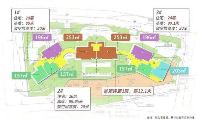 在楼栋规划与建筑高度方面,项目共规划3栋高层住宅,楼层高度分为20层、24层和26层三种,其中1栋位于小区西侧,20层高;中间2栋为楼王单位,26层高;3栋与1栋有些相似,24层高,楼栋总数适中,布局合理,避免了大型社区的拥挤与嘈杂,同时也能保证各个区域的私密性和舒适度。26层的楼王单位定位最高,主打高端大平层,居住舒适度和尊崇感极强;20层和24层的楼栋,户型涵盖多种面积段,满足不同高净值人群的需求。建筑高度严格符合区域整体规划要求,既保证了项目的采光和通风,又能与周边的建筑和景观完美融合,形成和谐美观的城市形象,彰显高端豪宅的气质。