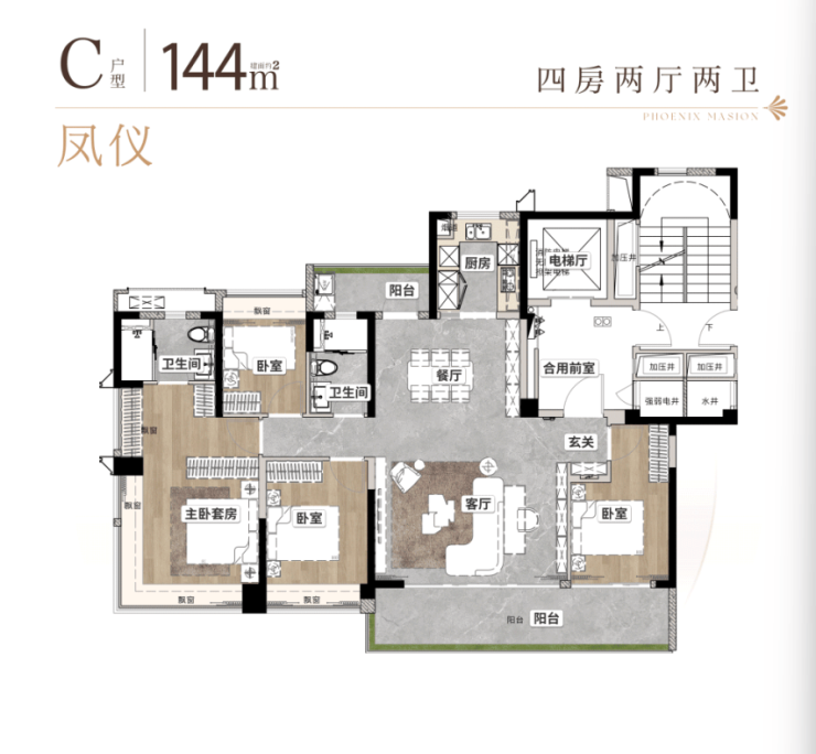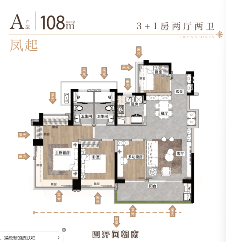 主力户型:89㎡三房两卫(得房率80%)、115㎡四房两卫(南北通透)