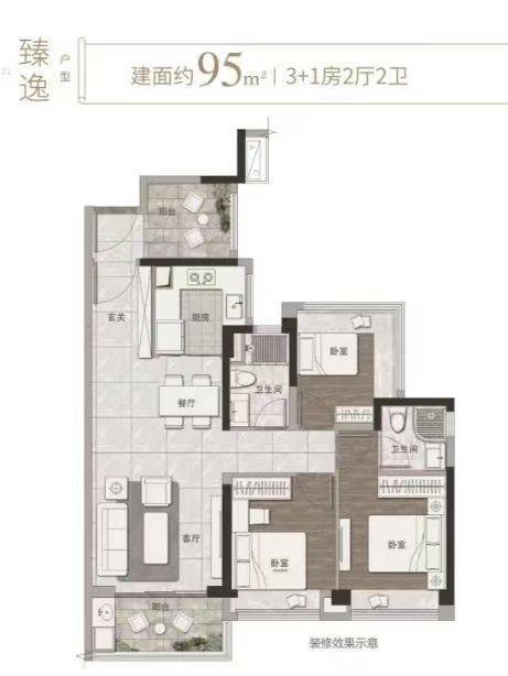 95㎡的 3 + 1 神户型以其方正实用的设计,在同等面积下多一房,为家庭提供了更多的空间选择。这个额外的房间可以作为书房、儿童活动室或者客房,满足家庭不同阶段的需求,真正实现了空间的灵活变换。