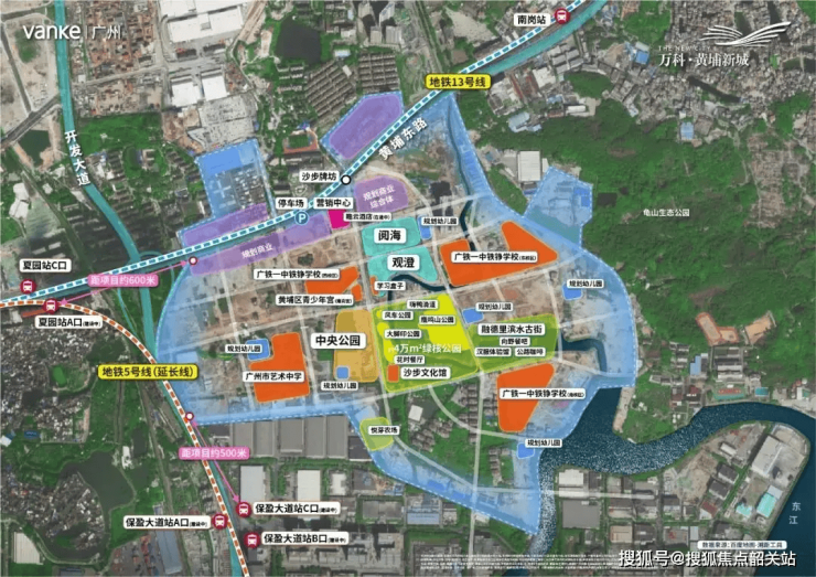 老黄埔的区位优势,在于“离核心区足够近,却无核心区的拥堵”。黄埔新城的具体位置,更将这一优势发挥到极致: