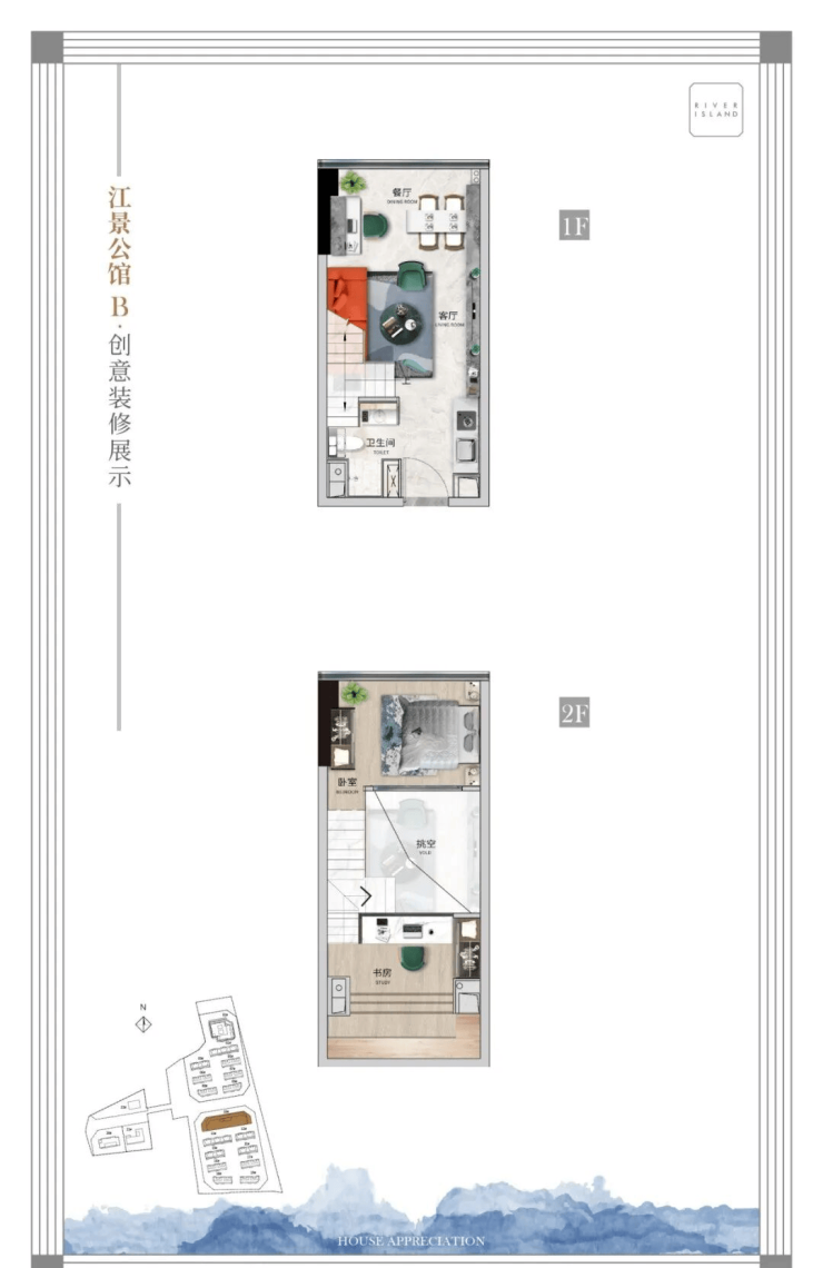 两类户型共享社区全部配套,包括文化中心、老人福利院、滨江步道等,真正实现“小面积享大配套”。