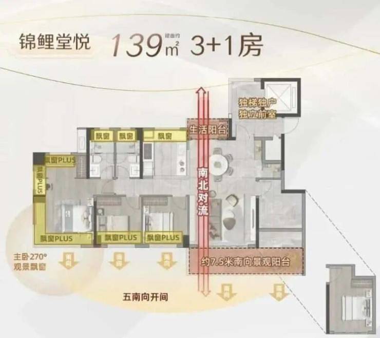 如果说地段是房子的骨架,那户型就是灵魂。保利锦鲤堂悦作为禅城首批执行新规的产品,最大亮点在于接近100%的使用率——这意味着你花128㎡的钱,实际能用到近128㎡的空间,远超传统楼盘80%-85%的平均水平。新推13座采用2梯2户纯板楼设计,128㎡与139㎡四房均为专梯专户,私密性与仪式感拉满。139㎡户型更配备约7.5米南向景观阳台、南北双阳台、主卧270°转角飘窗,实现三面采光;LDKB(客厅+餐厅+厨房+阳台)一体化布局打破空间壁垒,非承重墙可灵活改造,适配二胎、居家办公、养老等多元生活场景。全系卧室落地飘窗、主卧标配转角窗等细节,不仅提升空间感,更强化了居住情绪价值——这才是真正“以人为本”的产品主义。