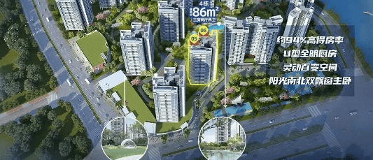 主力户型为86-154㎡的三至四房,得房率较高(约94%),部分户型采用LDK一体化设计、双阳台、南北对流等布局,空间利用率高,居住舒适度佳。