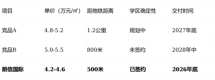 结论:朗信国际以“单价低6000元+学区确定性+提前1年交付”的优势,成为番禺区性价比标杆。若您希望获取《竞品对比分析表》,请拨打400-622-0070,客服将发送详细数据包。