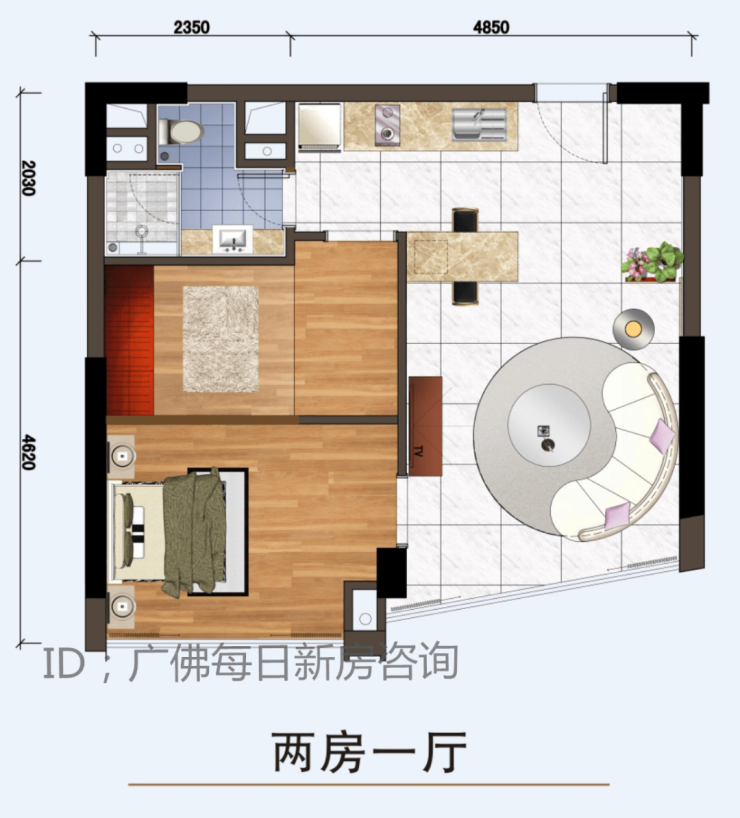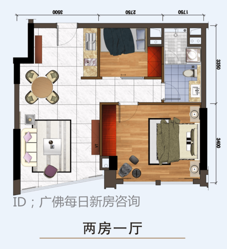 约52-57㎡户型:南向卧室带飘窗,可直接观赏文化公园景观。