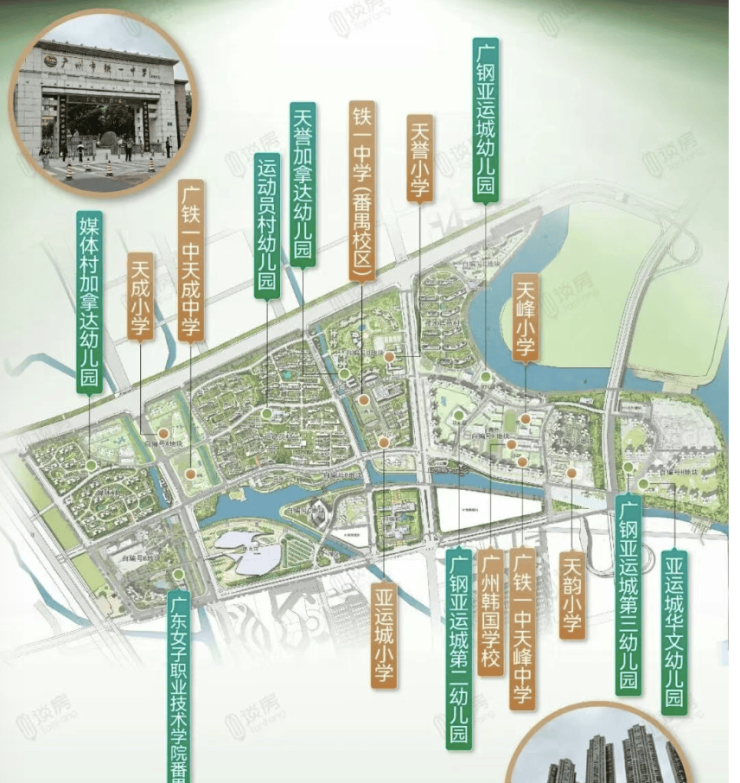 教育,是中国家庭最为核心的关切,也是房产价值的“压舱石”。中海亚运城在教育资源上的配置,堪称“航母级”与“确定性”的典范。项目板块内规划了19所学校,其中18所已建成开学。而最引人瞩目的,是成功引入并已全部开学的4所“广铁一中”系学校(涵盖小学、初中、高中)。广铁一中是广东省首批国家级示范性普通高中、省一级学校,其教育质量、管理水平和高考成绩在广州名列前茅,连续多年高考重本(特控)上线率超过90%,是广州家长心目中的名校标杆。