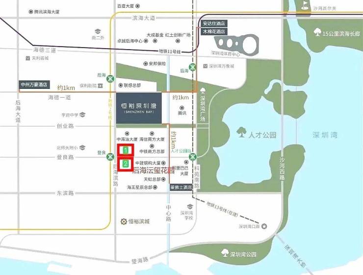 深圳湾澐玺位于南山区后海滨路与登良路交汇处,紧邻地铁2号线登良站(C出口),1站直达后海站(深圳湾万象城),3站可达福田CBD(车公庙站)及前海合作区(前海湾站)。项目所在的后海总部基地,是深圳“十四五”规划中重点打造的国际化综合区域,汇聚了阿里、腾讯、百度等全球企业巨头,形成“金融+科技+文化”的产业生态链。
