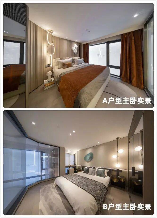 主卧与两个次卧,同样采用落地玻璃窗,目测主卧景观面超过3米,两个次卧也有约2米以上,若是看江的单位,则可层层躺着看江。