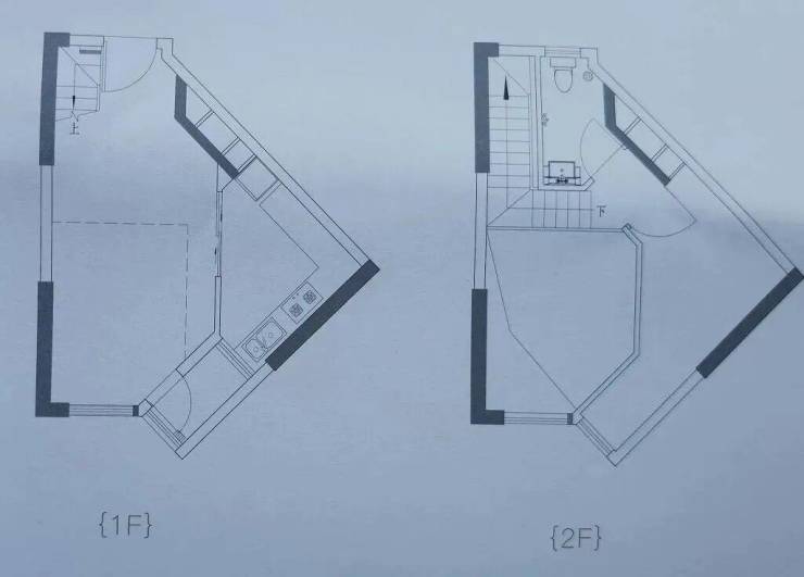 点评:这是建面60多㎡单位中,唯一没有板房的户型,装修改造后情况如何不好判断,但从户型图看,尖角仍然存在。