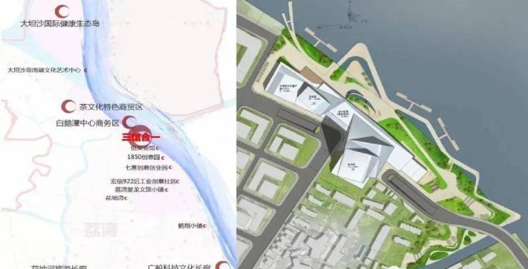 白鹅潭作为两千年海上丝绸之路发源地,承袭广府商都文化,沿江打造珠江文化长廊,如三馆合一、科技馆、音乐厅等。
