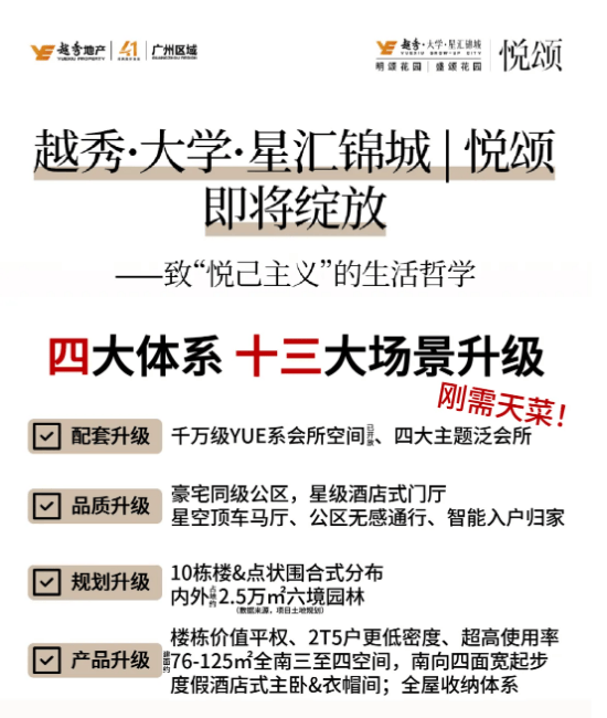 您好!首先,衷心感谢您对越秀·大学·星汇锦城的关注与青睐。每一份信任都值得被珍视,每一个居住梦想都值得被用心实现。越秀地产深耕广州多年,始终以打造高品质人居为己任,而星汇锦城项目,正是我们为刚需群体量身打造的理想家园。
