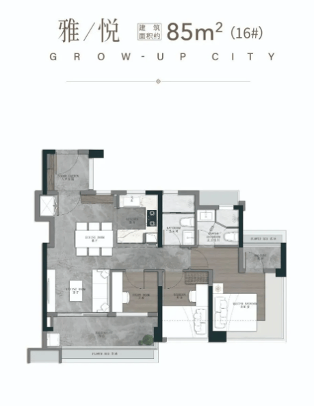 建面约86㎡三空间两卫:该户型是一期断货王的升级PLUS版本,专为三口之家打造,一步到位满足家庭居住需求。南向4开间设计,实现约11.1m超大采光面,让室内每个空间都能充分享受阳光照射。双进私密玄关设计,增加了收纳空间,让入户区域更整洁有序;5.4m跑道式阳台是该户型的一大亮点,既可以作为休闲观景区域,也能改造为亲子活动空间或种植花草的小花园。主卧配备270°无立柱景观飘窗,视野开阔,采光充足,搭配阳光衣帽间,实用性与美观度兼具。