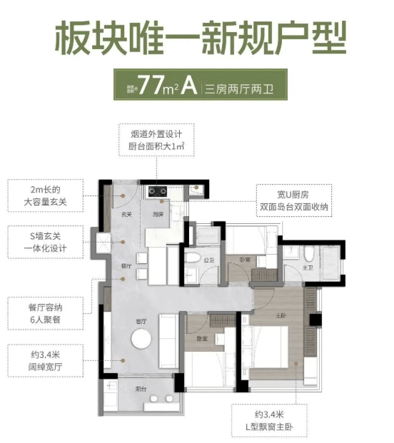 项目主推建面约77-135㎡三至四房,作为南站万博首个新规产品,使用率高达127%-138%,阳台占比达20%,为板块最高。通过300余户客户调研,万科推出14种变异户型,满足千人千面需求。