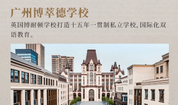教育是项目核心优势。地块配建36班九年一贯制公办学校(暂定名)与9班幼儿园,2025年6月官宣引入湖南师范大学附属学校,填补片区优质公办教育空白。周边还有由周大福教育集团与英国博耐顿学校合办的广州博萃德国际学校,提供顶尖国际化教育选择。