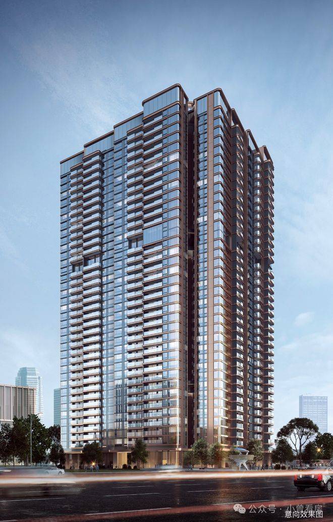 外观和产品力是观澔府最先打动人的地方。外立面采用大面积玻璃幕墙结合玫瑰金铝板线条,视觉上晶莹高级又不过分张扬。连体板楼加咬合式布局,把江景资源榨到极致,大部分户型都能享受到宽阔的江面视野。归家动线走酒店式设计,星环造型大堂自带仪式感,一进小区就切换到度假氛围。